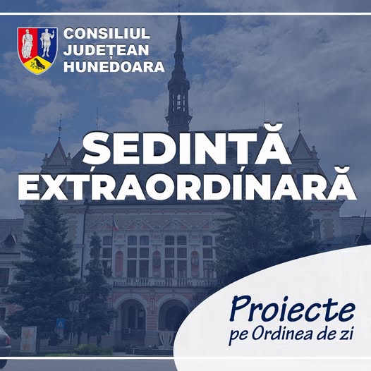 Consiliul Județean Hunedoara este convocat joi, 16 octombrie 2025, ora 12.30, în ședință extraordinară, în sistem videoconferință, cu următorul proiect al ordinii de zi: