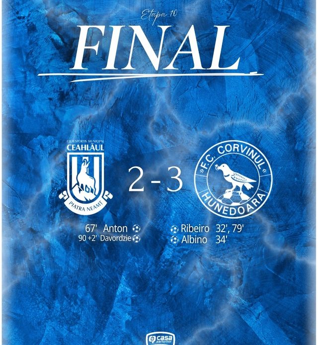 Formaţia Corvinul Hunedoara a învins, sâmbătă, în deplasare, cu scorul de 3-2, echipa Ceahlăul Piatra Neamţ, în etapa a X-a a Ligii a II-a.
