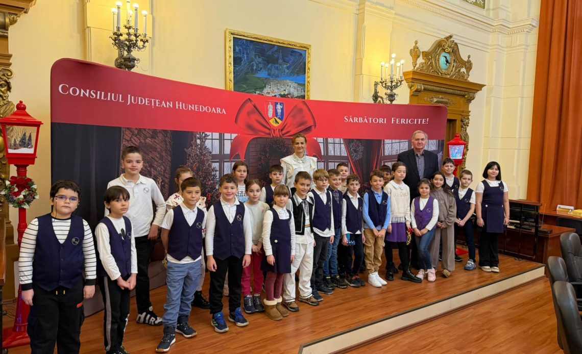 Astăzi, la Consiliul Județean Hunedoara am primit cu mare bucurie primele grupuri de colindători. Copiii au fost întâmpinați în sala de ședințe a instituției de către vicepreședintele Ioan Demeter și angajații CJ Hunedoara.