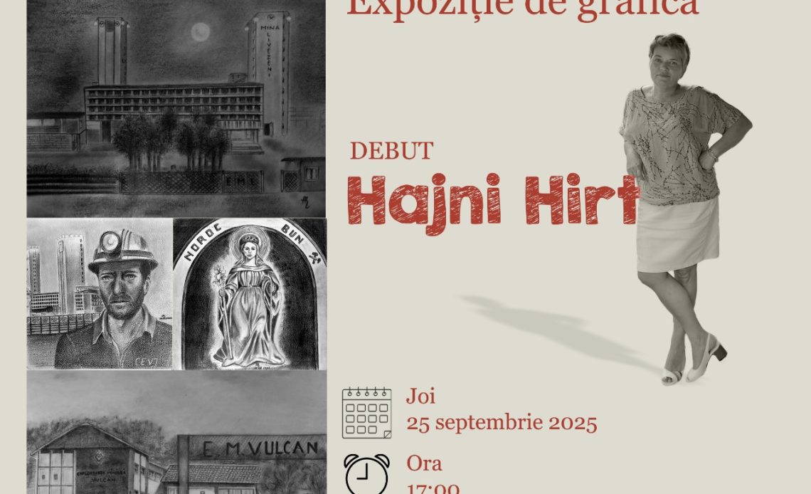 Mai puțin prezentă, în ultimii ani, în peisajul expozițional al Văii Jiului, arta grafică se bucură însă de atenția creatorilor și, în egală măsură, a consumatorilor de artă plastică. Un exemplu edificator este și expoziția de grafică intitulată sugestiv „Tușe de cărbune”, pe care se pregătește să o găzduiască, la finalul acestei luni, Exploatarea Culturală Petrila. Mai mult decât atât, expoziția aduce în prim-plan un nume nou pe firmamentul artelor plastice din Valea Jiului, consemnând odată cu vernisajul programat pentru data de 25 septembrie 2025, debutul artistic al autoarei: HAJNI HIRT.