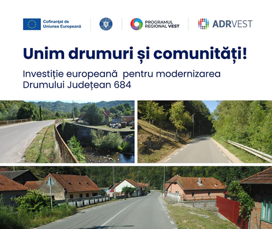 Trei județe – Caraș-Severin, Timiș și Hunedoara – vor fi interconectate printr-un proiect european în valoare totală de aproape 90 de milioane de euro, pentru modernizarea Drumului Județean 684.